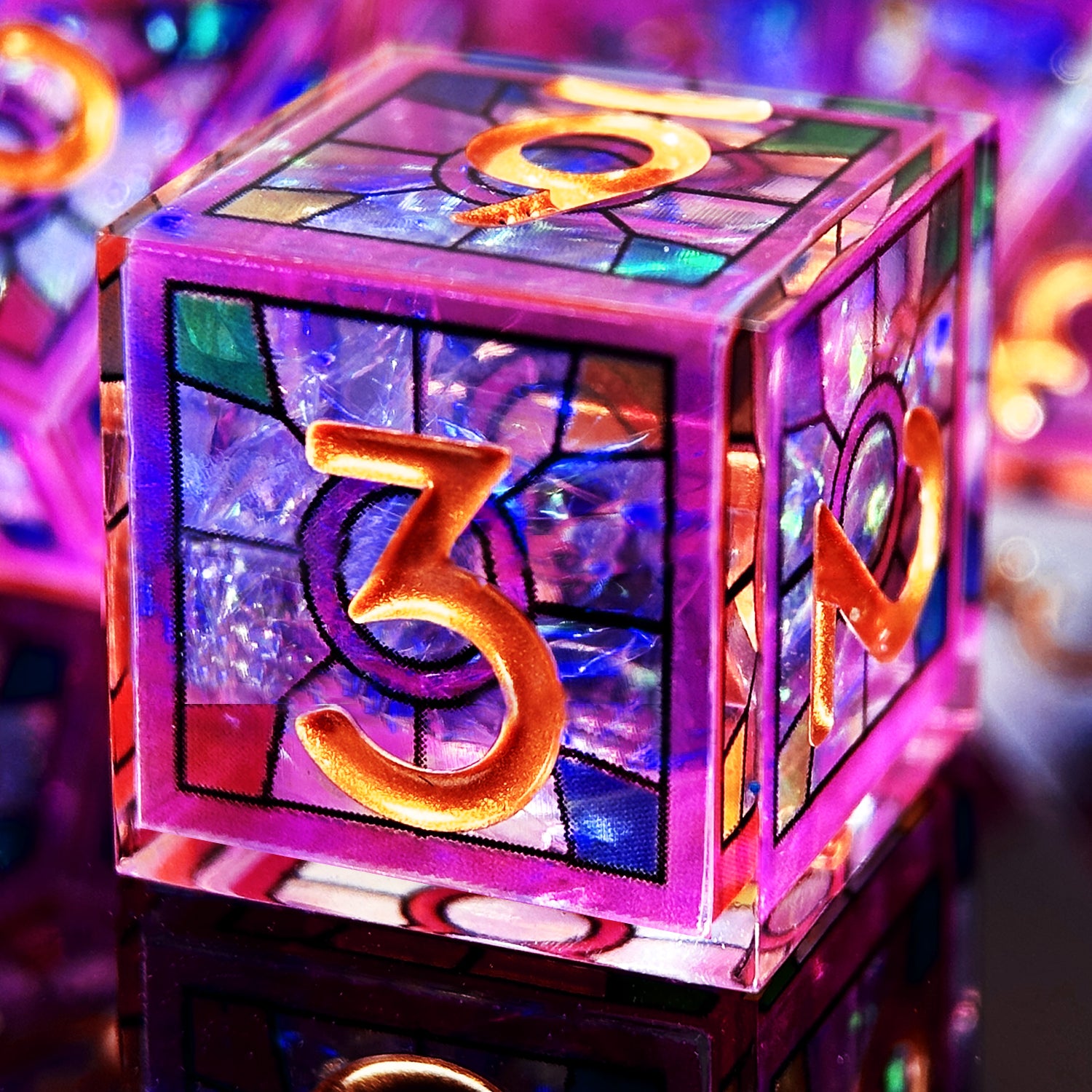 Outer Layer: Encased in a flawless resin shell, the dice gain depth and durability while preserving their radiant "stained glass" illusion.